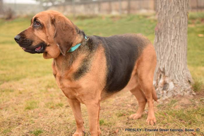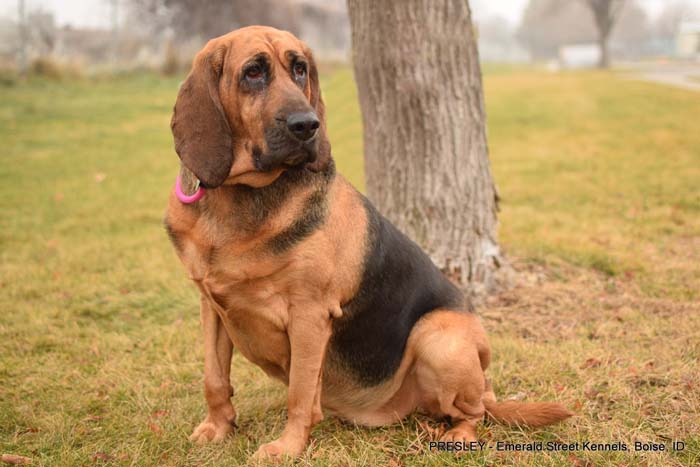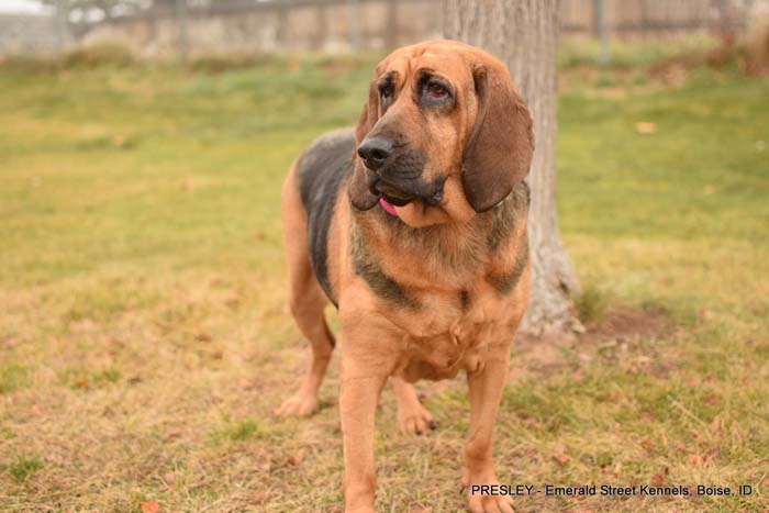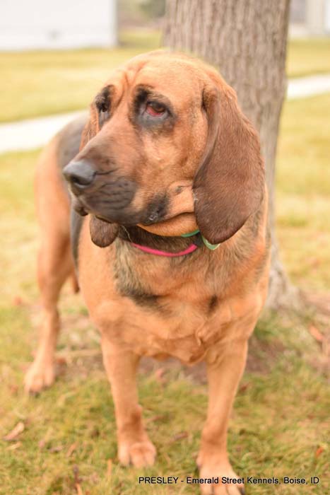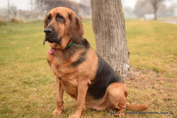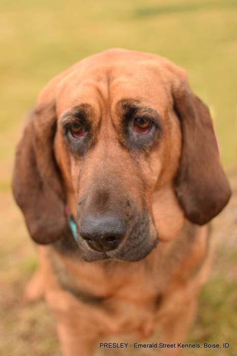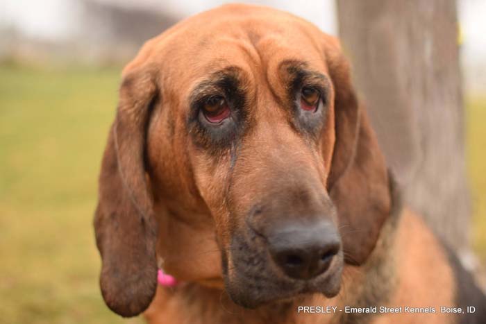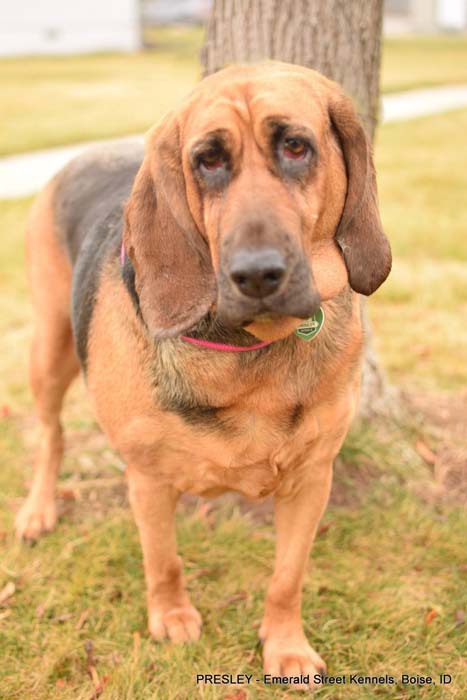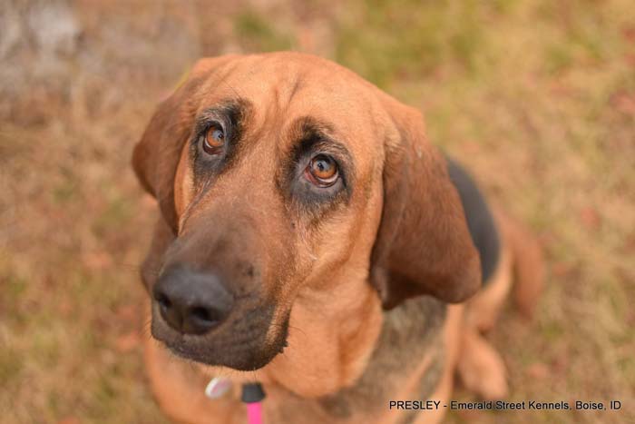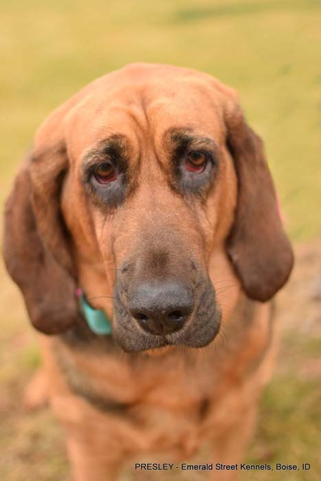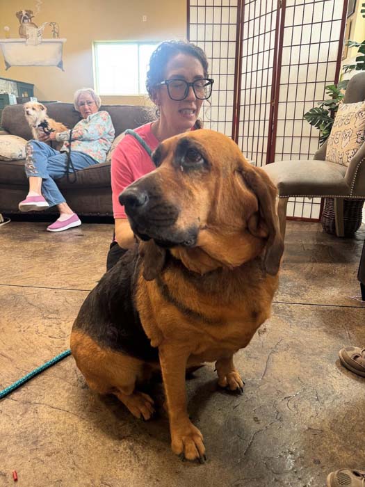 She is a 6-year-old, 75-lb Bloodhound who is looking for an active family with a strong leader who knows the breed.