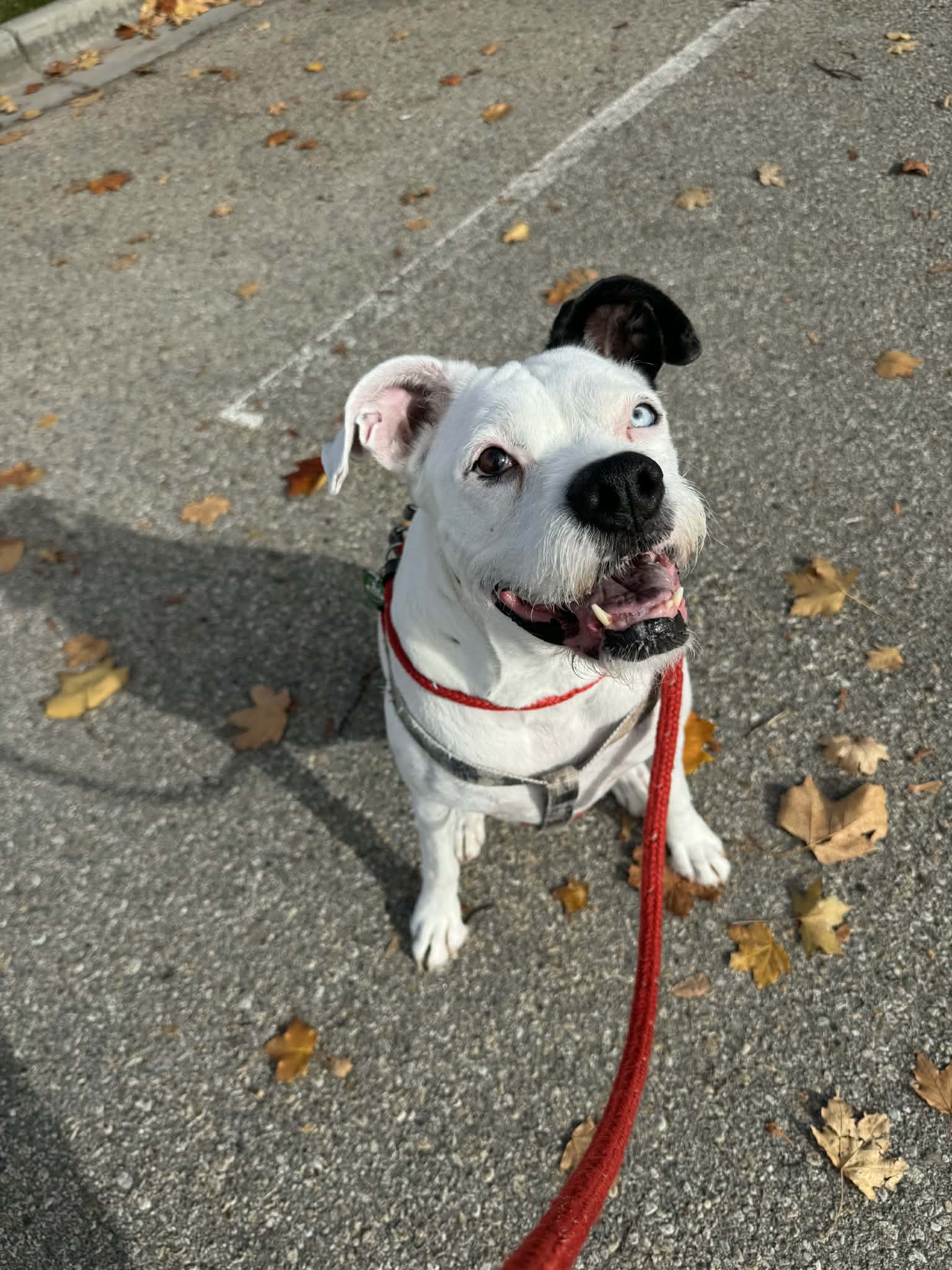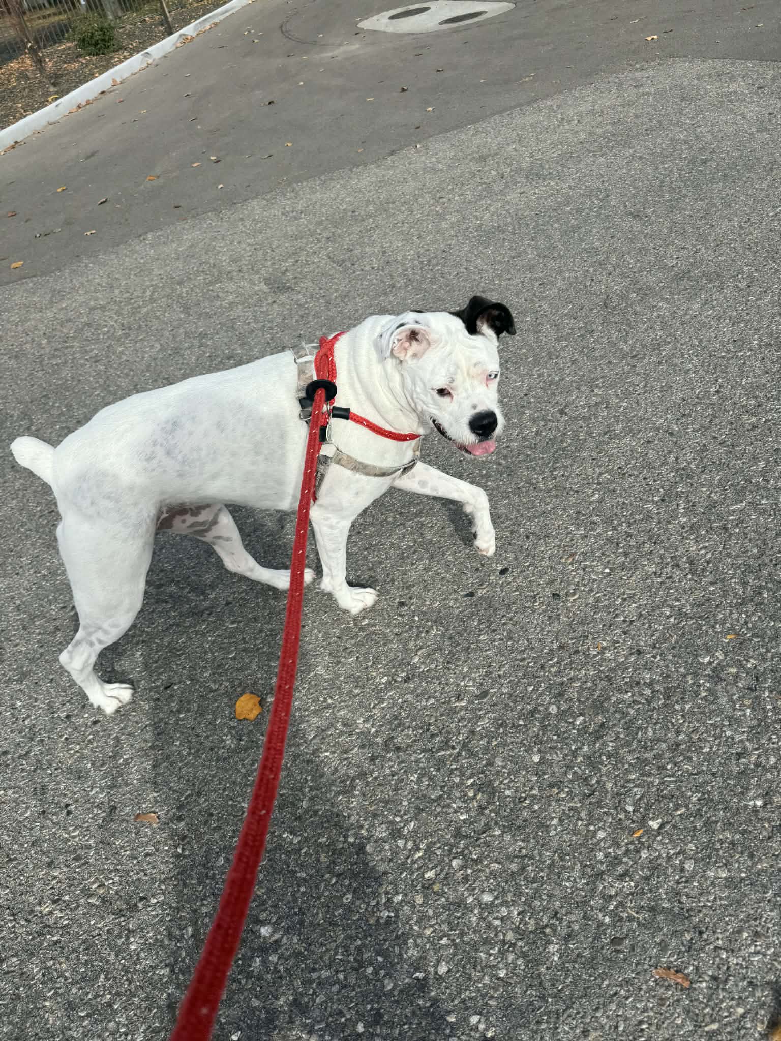 TITAN has a medium energy level, enjoys the company of other dogs, and has never shown any reactivity. TITAN walks well on a leash and enjoys car rides. He jumped right into a volunteer's vehicle at the beginning of a walk.